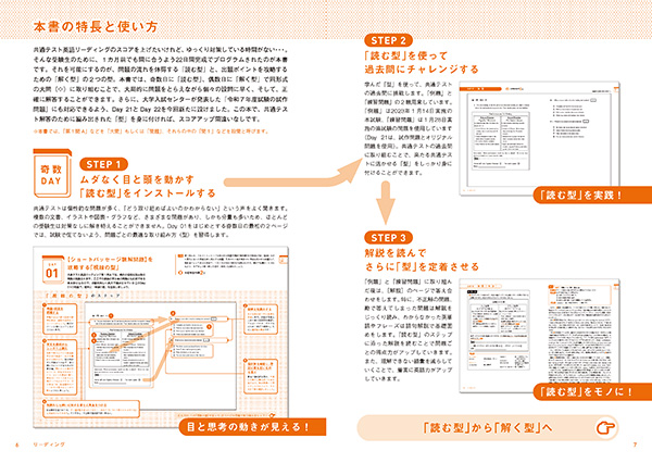 本書では、奇数日に「読む型」、偶数日に「解く型」を使って、同じ形式の大問(第1問A、第1問Bなど)に取り組みます。そうすることで、俯瞰的に問題をとらえながら個々の設問に早く正確に解答できる「得点力」を養うことができるのです。