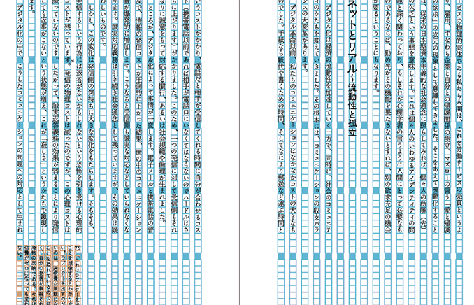 弊社では優秀な文字組みを究めたDTPの職人の集団を抱えています。出版業界を知り尽くした営業スタッフがおり、ビジュアルディレクションするデザインを究めたデザインチームがあり、そして品質を管理する校正スタッフがいます。これらが連携することにより、細部までこだわった本ができあがります。それぞれの工程のスタッフが指摘し合い、時には刺激し合い、常にレベルアップし続ける制作チームです。弊社だからこそできる他のデザイン会社では考えられない文章(文字)の魅力を紙面で実現します。紙媒体の王様である「本」の本作りを知り尽くすことはコミュニケーションする平面(紙・ウェブ・デジタル)すべてのデザイン制作を知り尽くすことでもあります。
