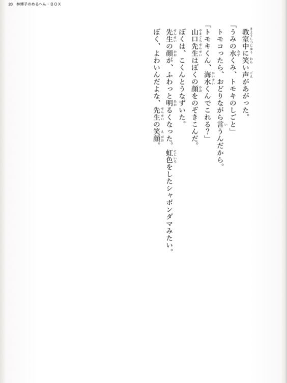 この「トモキとトモコ」は「林博子のめるへん・BOX」に収められています。七十余年の人生を歩んできた著者の珠玉の短編集も、どうぞご覧ください。