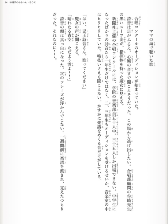 この「ママの海で聴いた歌」は、「林博子のめるへん・BOX」に収められています。七十余年の人生を歩んできた著者の珠玉の短編集も、どうぞご覧ください。