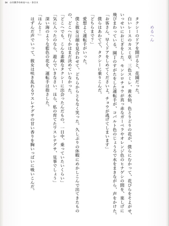 『めるへん・BOX』シリーズの第一箱『やさしいバイオレットをどうぞ』には、スミレの花をイメージして、ユーモアと希望を紡ぐ物語を五篇集めました。