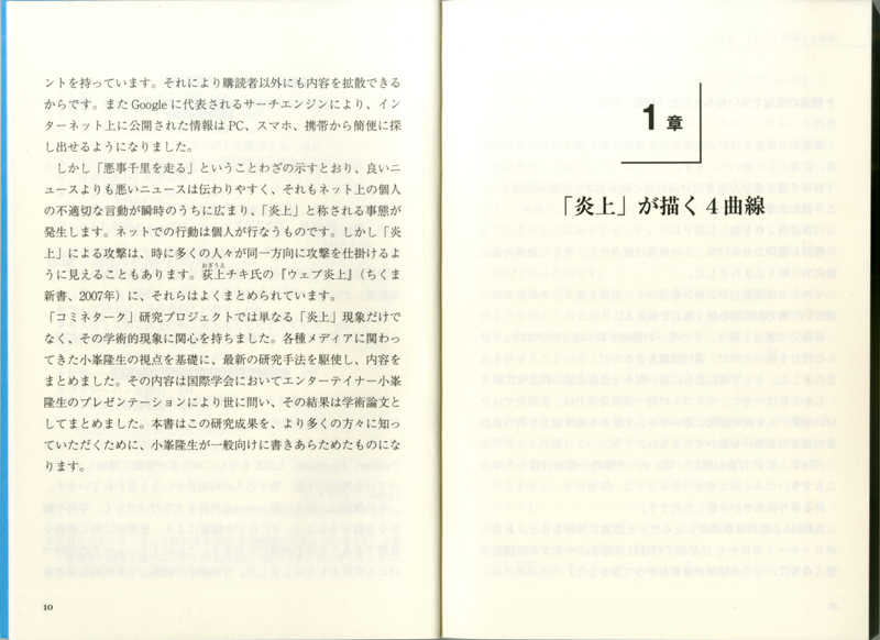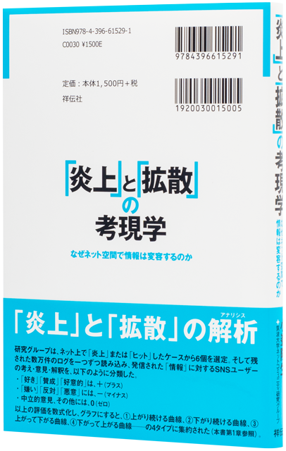 国際学会も注目。筑波大学研究グループによる、いまだかつてない試みを書籍化。各種掲示板やSNSなどネット空間で頻発する“祭り”を、学問的に解析・分析・評価・論考する。「炎上」「拡散」のメカニズムや波及効果、法則性、そして「情報」の還流と変容ぶりなど、膨大なサンプルを精査して得られた成果を分かりやすく解説する。例を挙げると……、 ●「炎上」を数式化すると4種類のグラフとなって現われる ●SNSを使う目的も4つに分類できる ●ネット言論は3つの基準(スタンダード)によって動かされる こうしたアプローチから、「同調圧力」や「縦社会」といった日本社会が持つ特性まで見えてくる。 デジタル社会に鋭く切り込む注目の本。