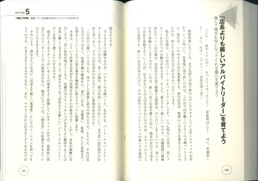 従業員満足」と「お客様満足」の向上を上手に連動させれば、「売れる店」ができる! 「スタッフが仕事に満足して辞めない店」を作っていかないと、 経営が成り立たない時代になってきています。しかし、漫然と「従業員満足度の高い店」にしても、 「お客様満足度」は向上せず、売上げが上がることはありません。 実は、「従業員満足」には6つのプロセスがあり、低いレベルで満足しているだけでは「お客様に満足していただきたい」という主体的な気持ちが生まれず、 売上げの向上には結びつかないのです。 本書で紹介する「従業員満足度」の6つのステップをスムーズに上っていくことができれば、スタッフは満足して、辞めることはなくなります。そのために店長は何をすればいいのか、豊富な事例を用いてわかりやすく解説します。
