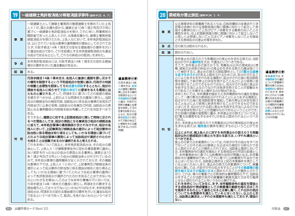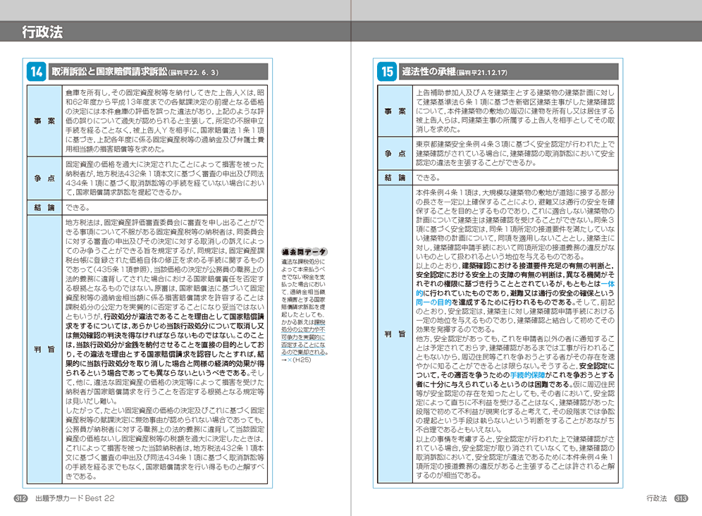 行政書士に合格するために必要な知識を効率よく学べるよう、過去問データベースや出題分析、学習方法を掲載。各チャプターのイントロダクションでは学習指針を示し、文章だけではわかりにくいポイントは、視覚的に捉えられるよう図表も用いて説明しています。 「重要ポイント」「キーワード解説」「要チェック! 過去問題」「参考データ」など、充実した多くの側注を載せるため、本文レイアウトはシンプルなものになっております。