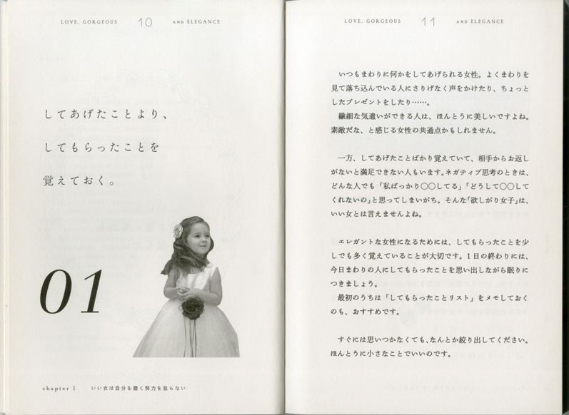 読めば自然に磨かれる!「いい女.bot」珠玉の名言45にここでしか読めないエッセイを添えて書籍化。“美しさは力。弱いなら美しさを磨こう。自分にしかない美しさを磨くことで強くなれる。それは力になる。” “自信がある人は、人に優しくできる。自信のない人は、人の自信を奪う行動をとる。” “愛している人が大切にしているものを大切にすること”ツイッターフォロワー26万人の毎日を彩る、強く、やさしい言葉たち。“女性であること”の喜び、楽しさを存分に味わい、今日この日を、かけがえのない一日を大切に生きるための本です。