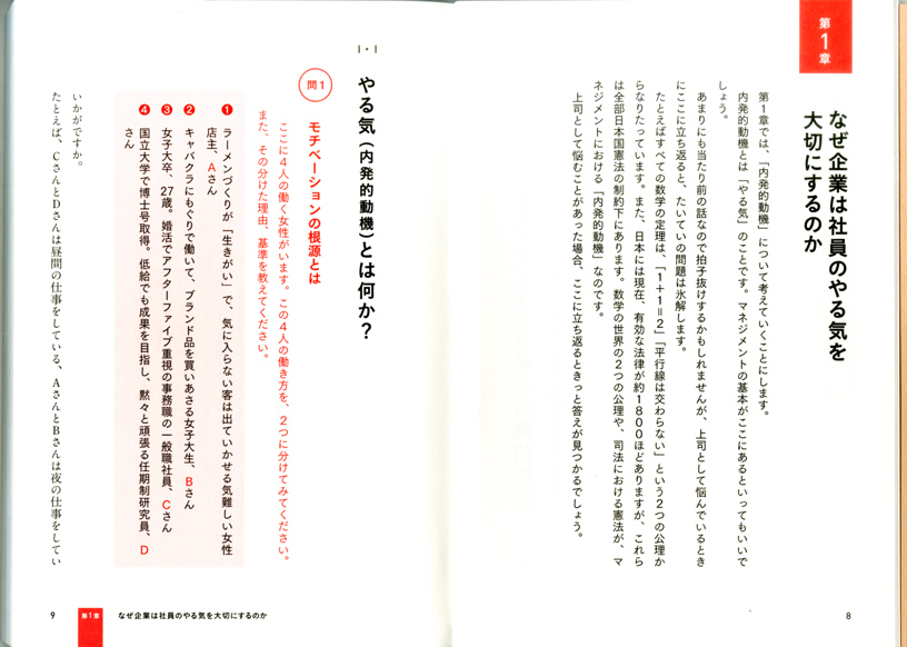 本書は、組織論のなかでも人と組織のマネジメントについて蓄積されてきた膨大な基礎的・学問的知識を、わかりやすく実例を使って解説した本である。特徴的なのは、それが単に紹介に終わらず、ここに書かれたことを学び実践することで、誰でも一定程度までは人と組織のマネジメントのプロになれることを目指した本であることだろう。その意味で、本書は単なる教科書ではなく、一種の教本である。人を動かすための手引きだとも言えよう。この本があることで、多くの人はようやく現場での人と組織のマネジメントに関する基礎課程を学ぶことが出来るようになったのである。