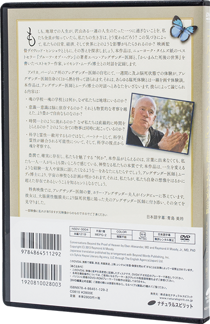 ハーバードのEben Alexander エベン・アレグザンダー脳神経外科医が自身の臨死体験を語るインタビュードキュメンタリーのDVDの日本語版のパッケージデザイン。ナチュラルスピリッツ出版が発行。DVDフォーマットケースと盤面のトータルデザインした。