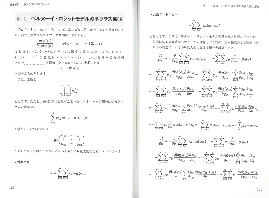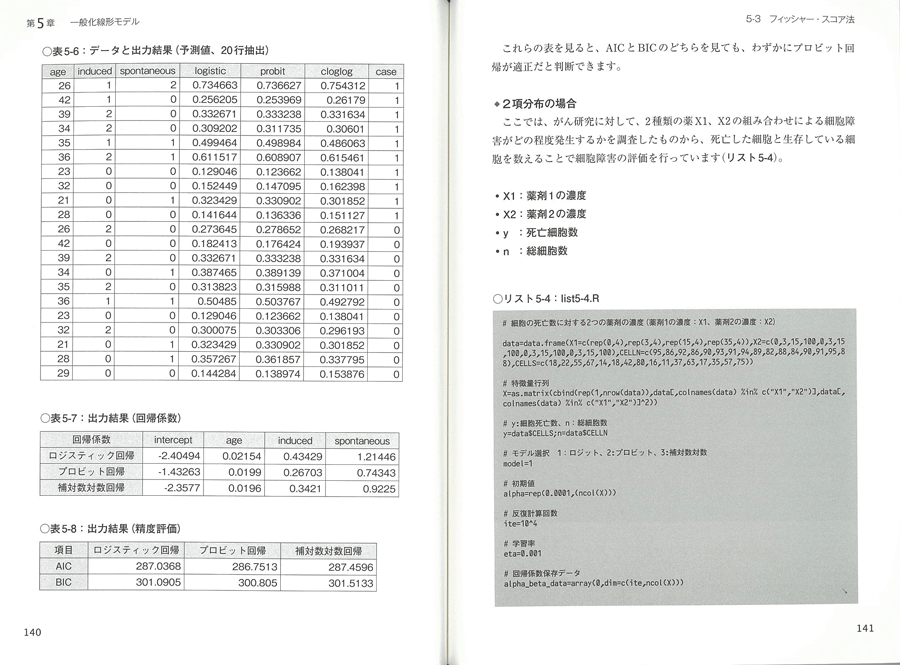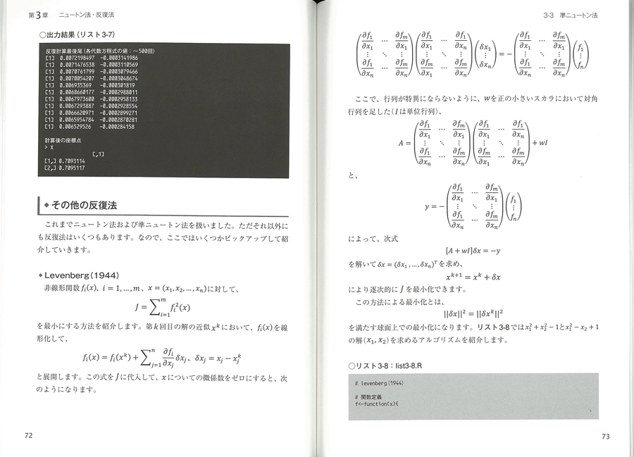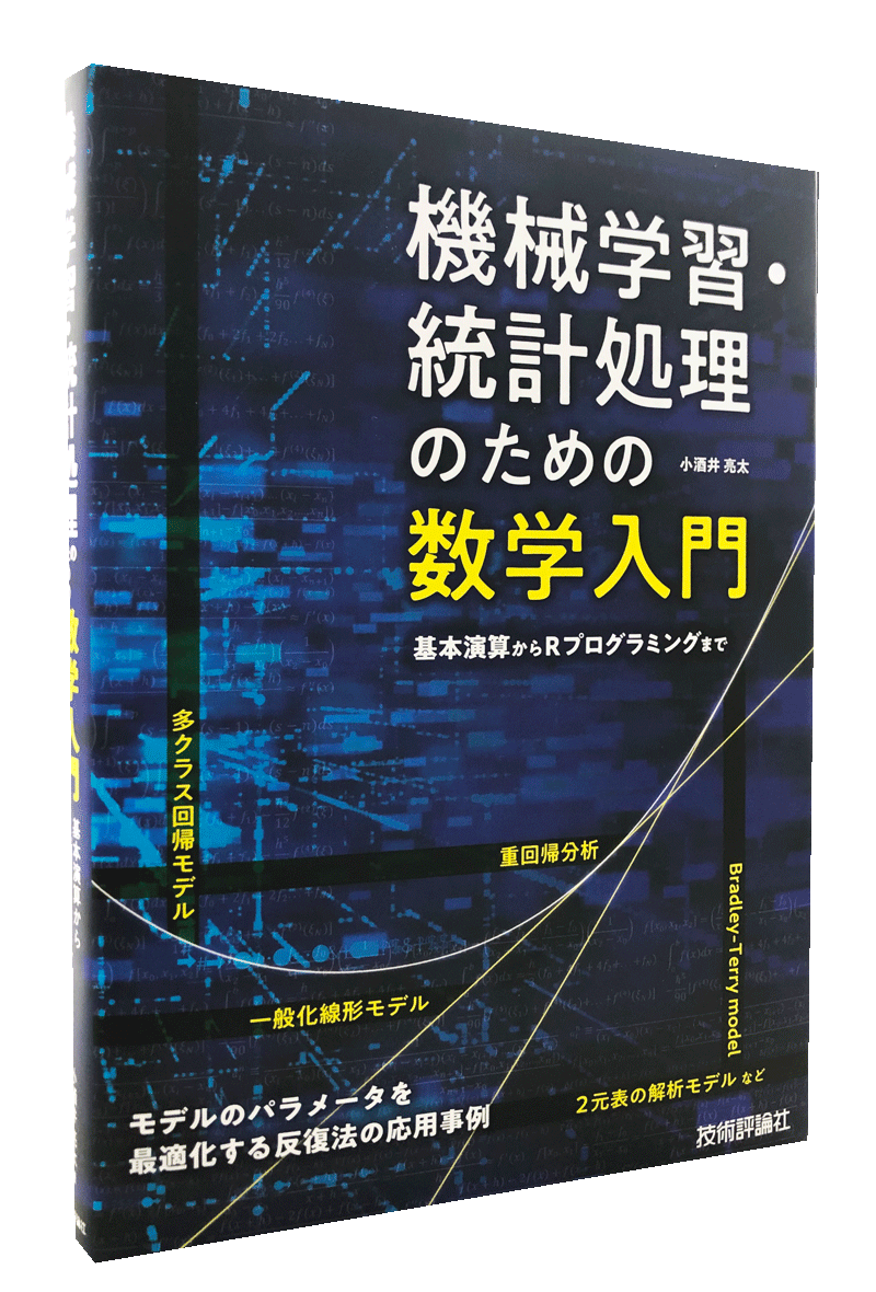 数学の素養があるだけではデータサイエンスのプロとは言えません。なぜなら、実際の数理モデル開発やデータ分析では、組み合わせ方やプログラミングの知識が必要になるためです。また、データ分析では、数値微分・数値積分の知識がプログラミングで計算する際には非常に役立ちます。そこで本書では、数値計算やパラメータ計算法などを説明したあとに、応用編として現場で利用されるデータ分析方法を取り上げます。具体的には「対数尤度(ゆうど)の最大化法と重回帰」「一般化線形モデル」「多クラス回帰モデル」「Bradley-Terry model」「2元表の解析モデル」「生存時間解析(ワイブル分布)」で、Rによる数値計算のプログラムも併記しています。本書を活用していただくと、例えば機械学習モデルのパラメータを導く際に必要な二階偏微分を要素とする行列(ヘッセ行列など)の計算が非常にラクになり、データサイエンスにおけるプログラミングで数値微分・数値積分や数値計算そのものの重要さを再確認できるでしょう。なお、本書は、大学の初等数学程度の知識を前提としています。