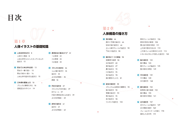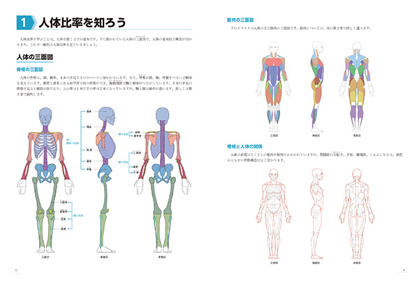 本書では全4章中の1・2章において、人体イラストの基礎知識と人体構造の描き方が解説されていますが、その解説は丁寧で平易であることから、初心者必携の書であるといえます。